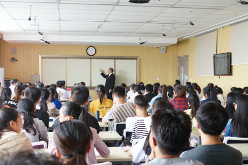 程郁缀教授以扎实的文学理论功底和深厚的家国情怀,为在场师生生动阐述了古典诗歌当中所蕴含的人文精神。从中国古代文学历史长河中最耀眼的明珠《诗经》和《楚辞》开始,指出中华民族在悠久的发展历史中留下非常宝贵的精神财富,无论是从时代还是地域和内容来看,都闪耀着灿烂的光辉和深厚的人文情怀。《诗经》和《楚辞》分别作为黄河流域、长江流域的民族文化结晶,透露着民族精神。程教授还以建安诗、六朝诗、唐诗和怀乡诗为例,进一步阐述了所蕴含的人文精神,并提出了关于人生价值和奋斗目标的真知灼见。