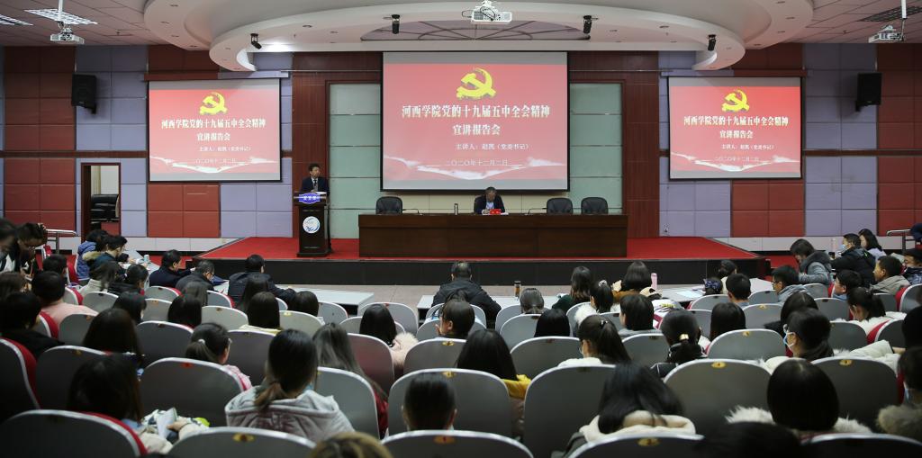 12月2日,河西公司党委书记赵凯在图书馆报告厅宣讲党的十九届五中全会精神,马克思主义公司党总支书记蔺海鲲主持报告会,公司相关部门负责人,3044永利集团全体师生参加宣讲会。