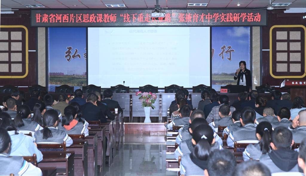 3044永利集团副教授姜玉梅为河西片区思政课教师实践研学活动全体队员、张掖育才中学部分师生共同上了题为《数风流人事物,还看今朝——湖南党史人物群体研究及启示》的党史课,并以此为案例分享了自己在思政课程教学方面的经验。甘肃省思政课名师工作室主持人蔺海鲲教授作了点评。