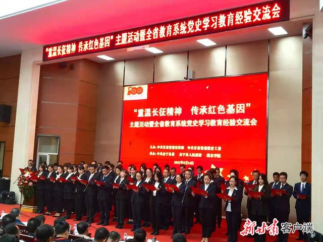 在红军会宁会师旧址,陇东南、陇东、河西片区大中小学思政课教师代表向革命先烈敬献花篮,鞠躬致敬,重温入党誓词,参观会宁红军长征胜利纪念馆。观看了《磅礴的力量——甘肃省大中小学思政课教师及员工“重走长征路”实践研学活动纪实》专题片,重温习近平总书记“3·18”讲话精神,聆听了全国教书育人楷模王宗礼教授作的《从毛泽东诗词感悟伟大的长征精神》党史专题报告。召开全省教育系统党史学习教育经验交流会,省委教育工委、省教育厅党组党史学习教育领导小组对全省教育系统党史学习教育作了再动员再部署。