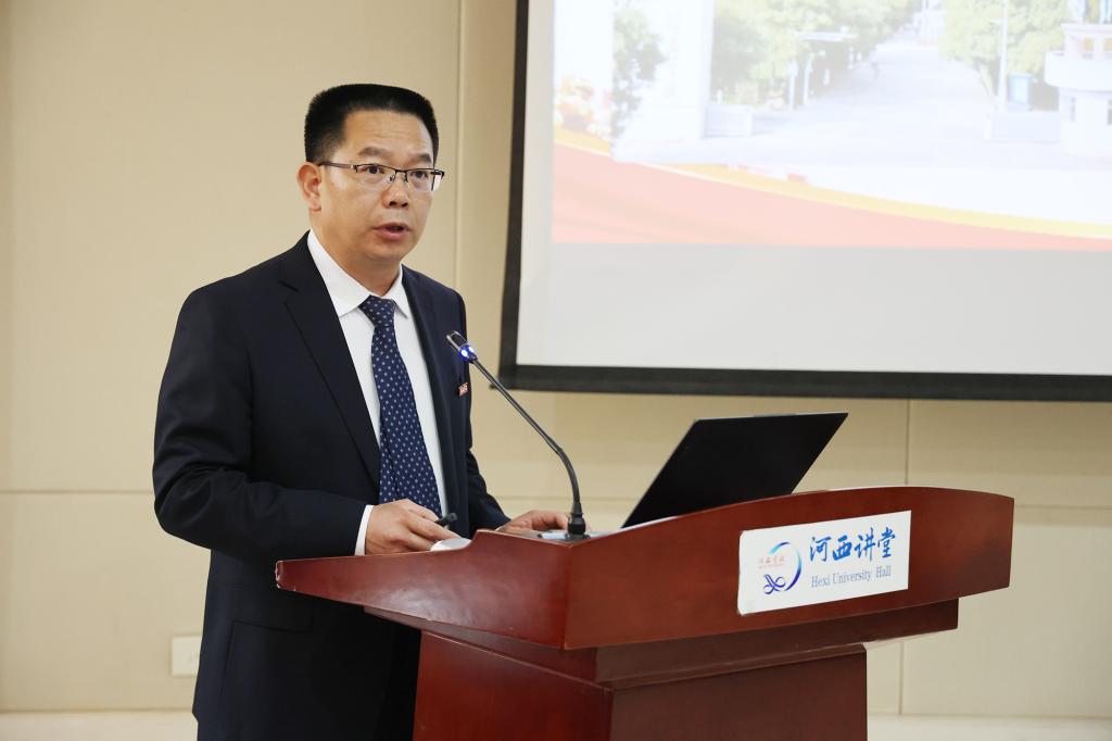 专家组组长、兰州大学党委常委、宣传部长安俊堂讲话
