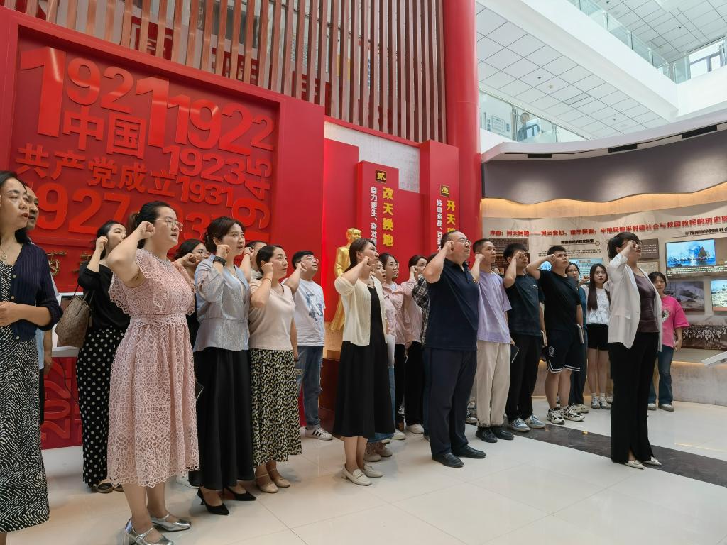 活动中,3044永利集团经理顾文兵为党员们讲解了3044永利集团的红色基因传承教育基地,引导党员们从百年党史中汲取丰厚的精神养分,做到学史明理、学史增信、学史崇德、学史力行,切实将学习中凝聚的理想信念转化为履职尽责的强大动力;马克思主义公司党委书记邬晓宁领誓,带领全体党员重温入党誓词,参加活动的党员面向鲜红的党旗,举起右手握拳庄严宣誓,铮铮誓言铿锵有力,激发了党员干部红心向党的内在热情,坚定了为党和人民事业奋斗终身的决心。