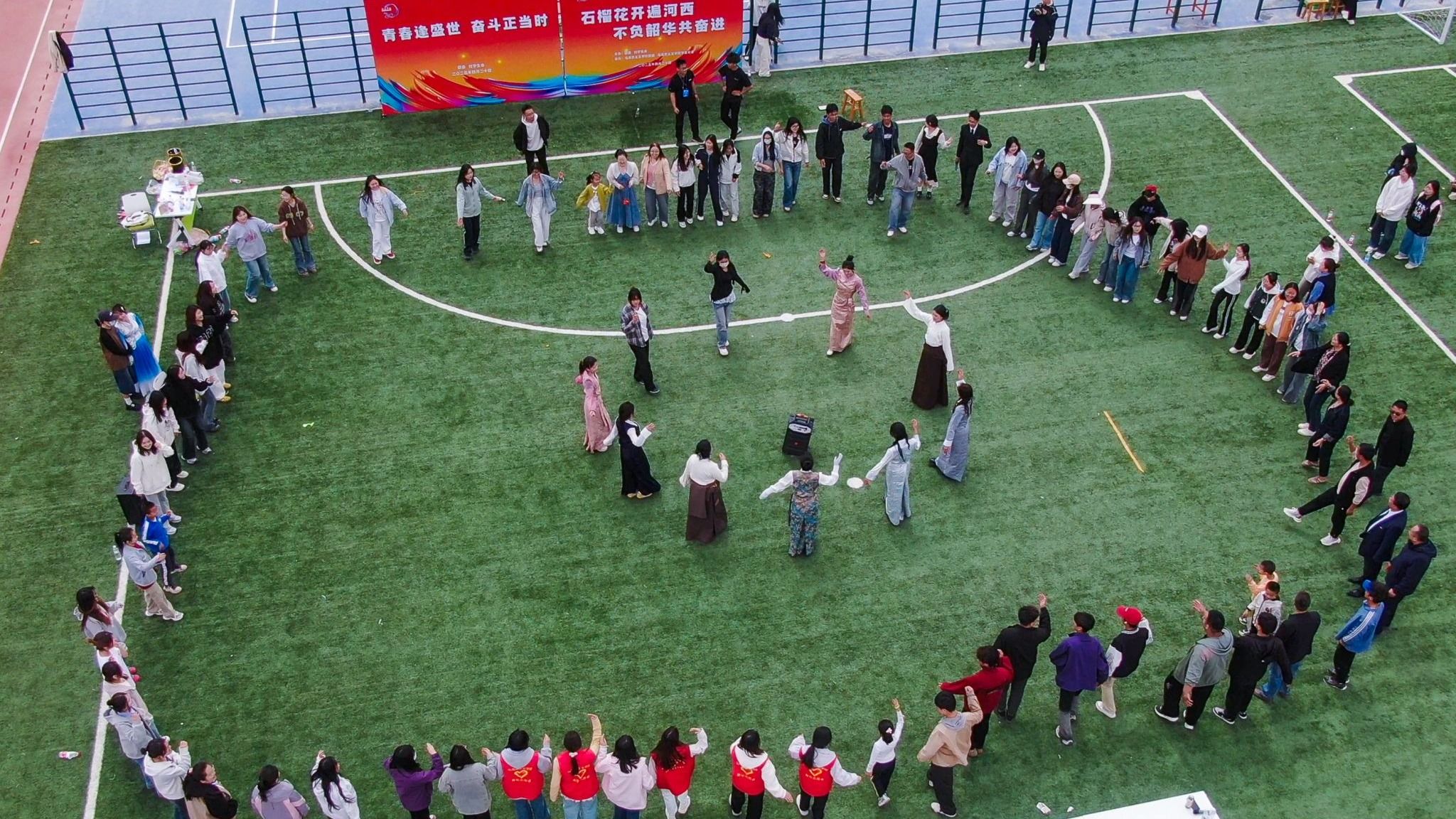 4月20日,3044永利集团在南区综合操场举办以“石榴花开遍河西 不负韶华共奋进”为主题的民族团结趣味运动会。